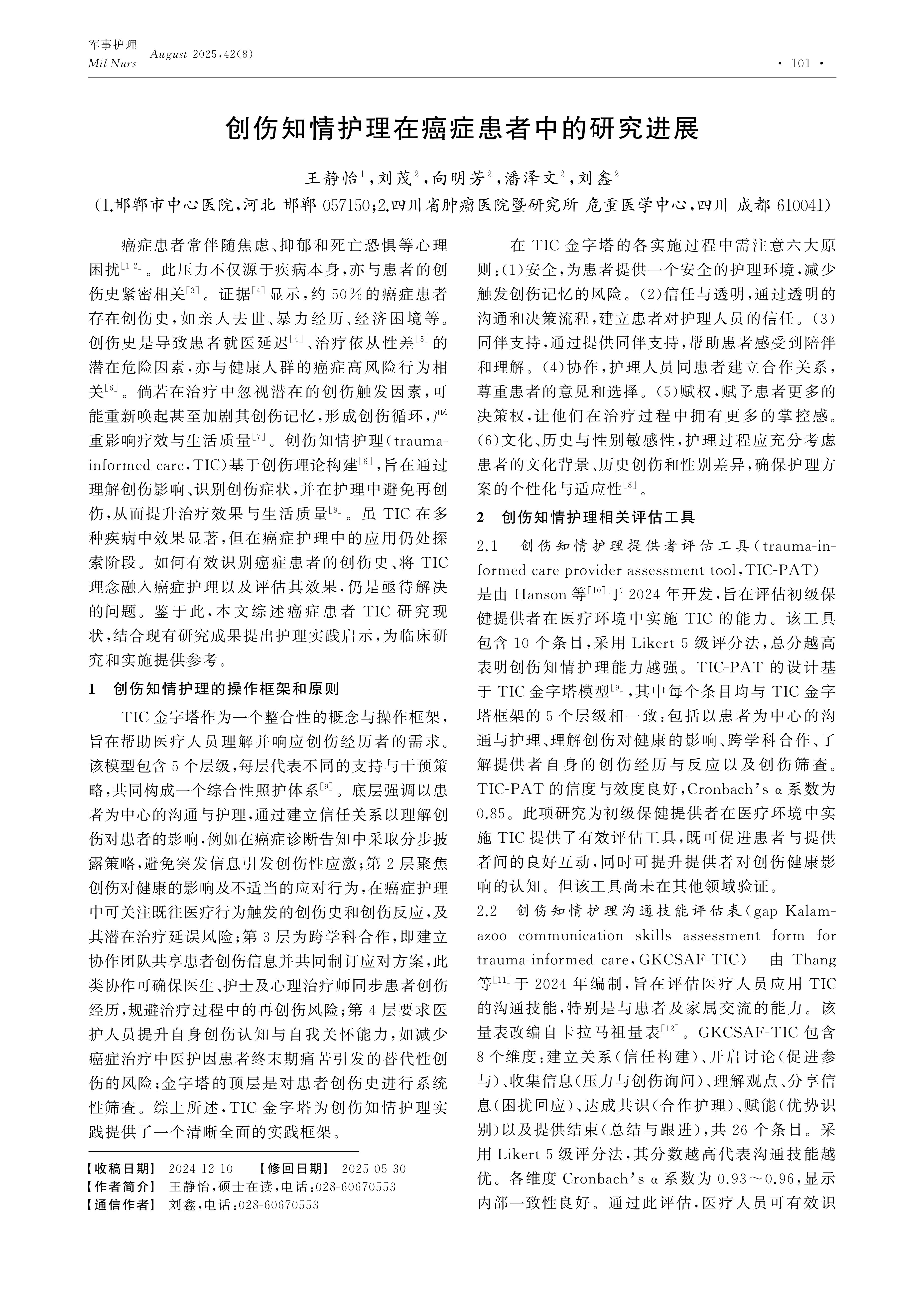 过刊浏览>2025年第42卷第8期 >2025,42(8):101-103. DOI:10.3969/j.issn.2097-1826.2025.08.024