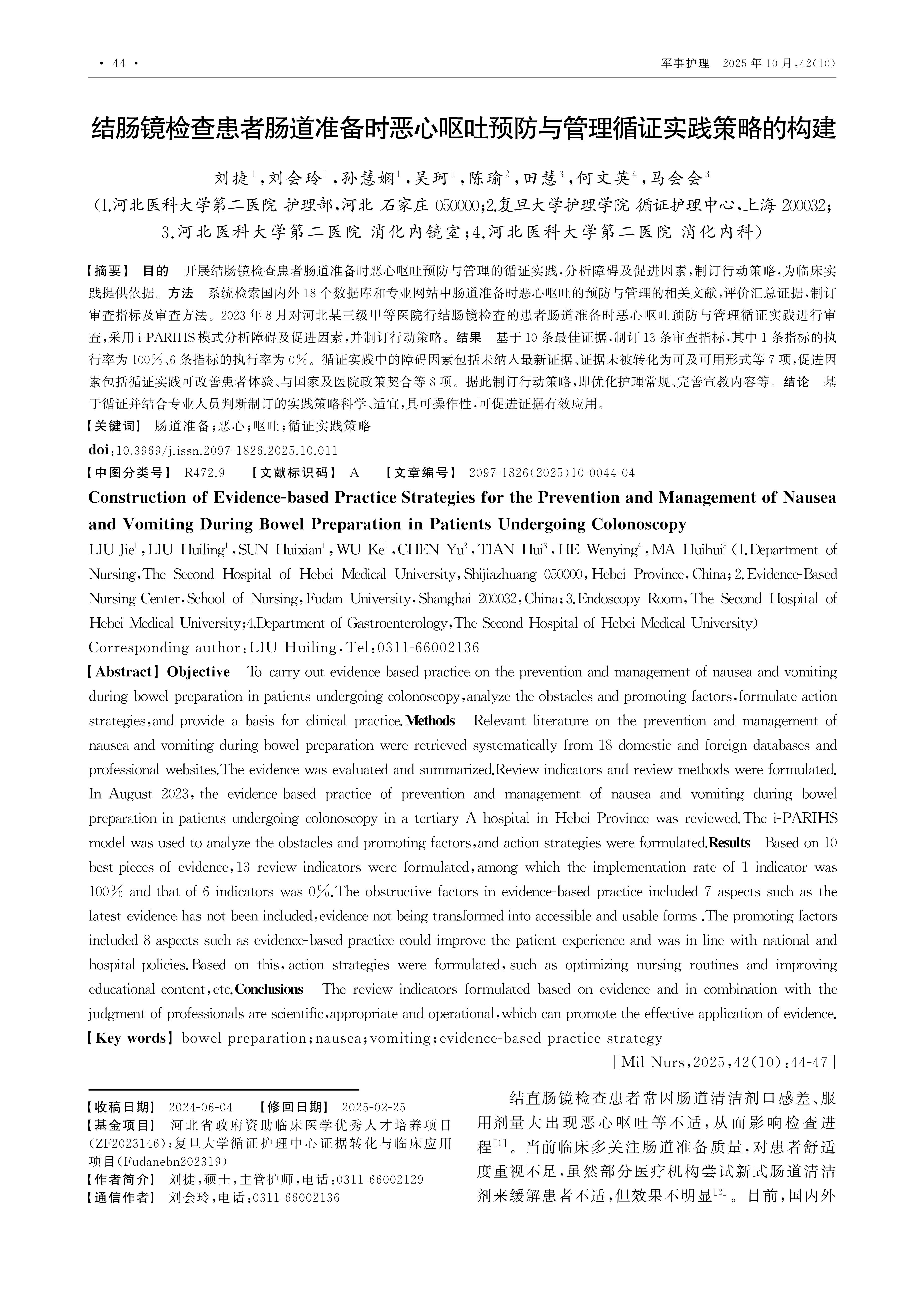 河北省政府资助临床医学优秀人才培养项目(ZF2023146);复旦大学循证护理中心证据转化与临床应用项目(Fudanebn202319)