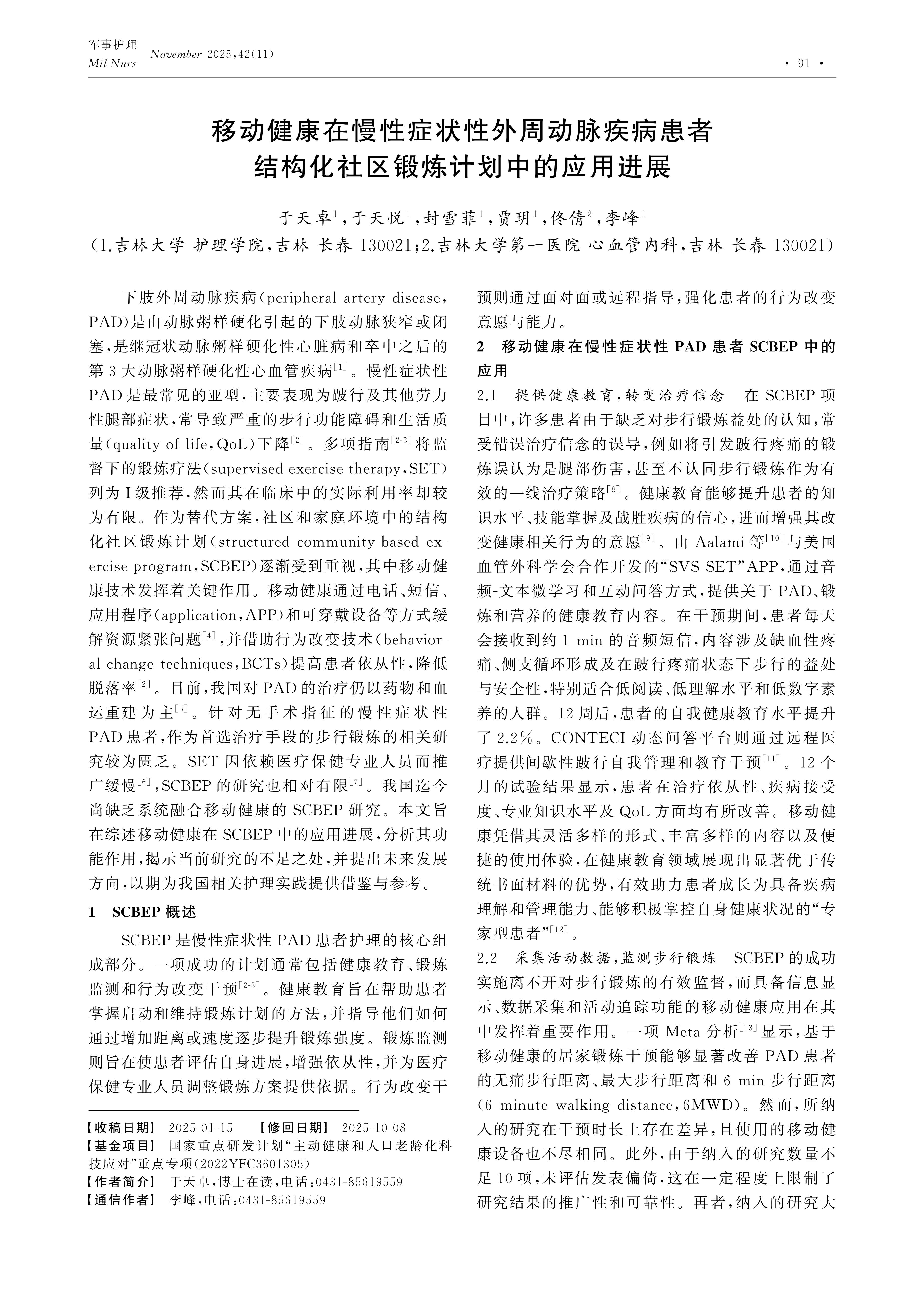移动健康在慢性症状性外周动脉疾病患者结构化社区锻炼计划中的应用进展