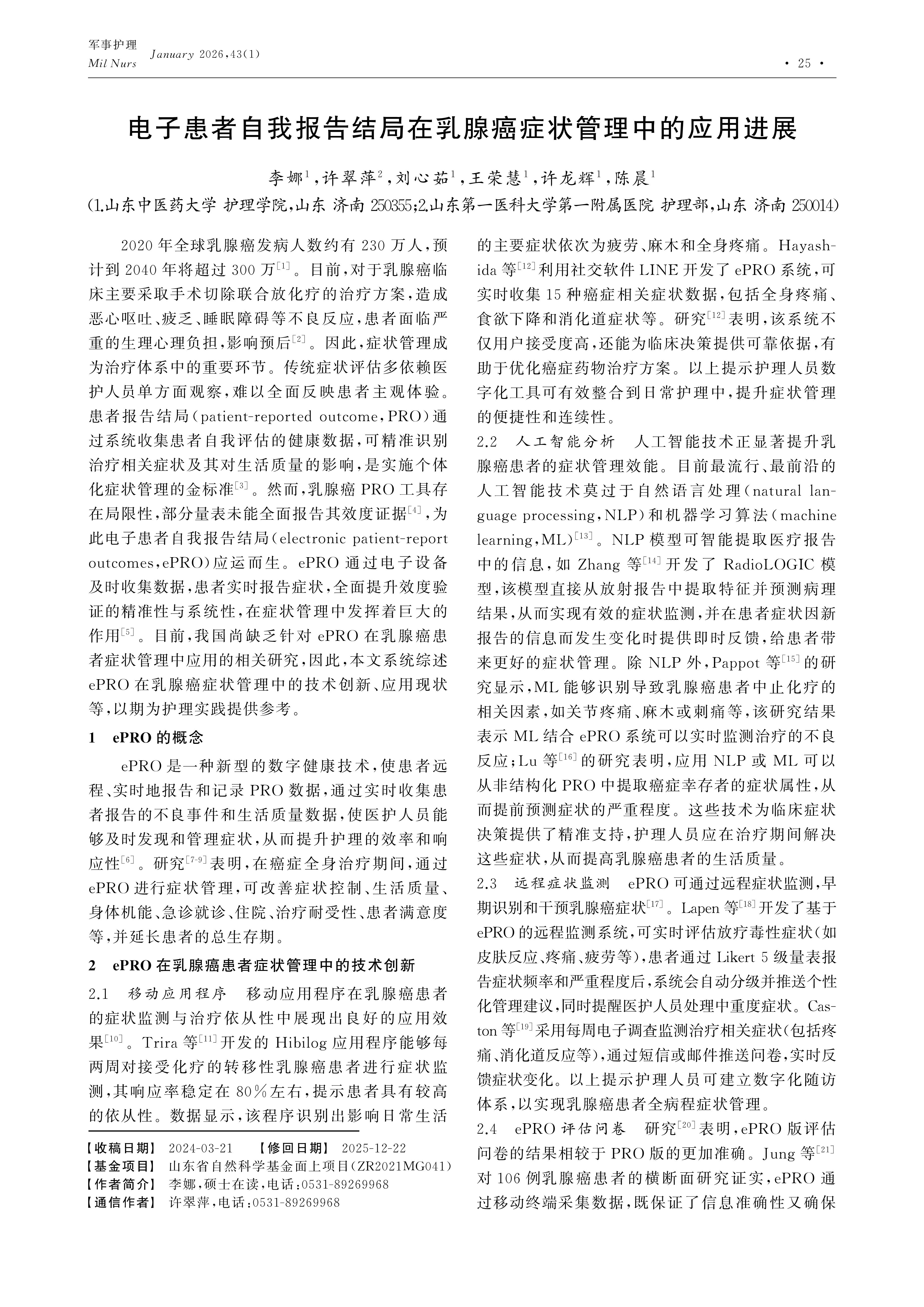 电子患者自我报告结局在乳腺癌症状管理中的应用进展
