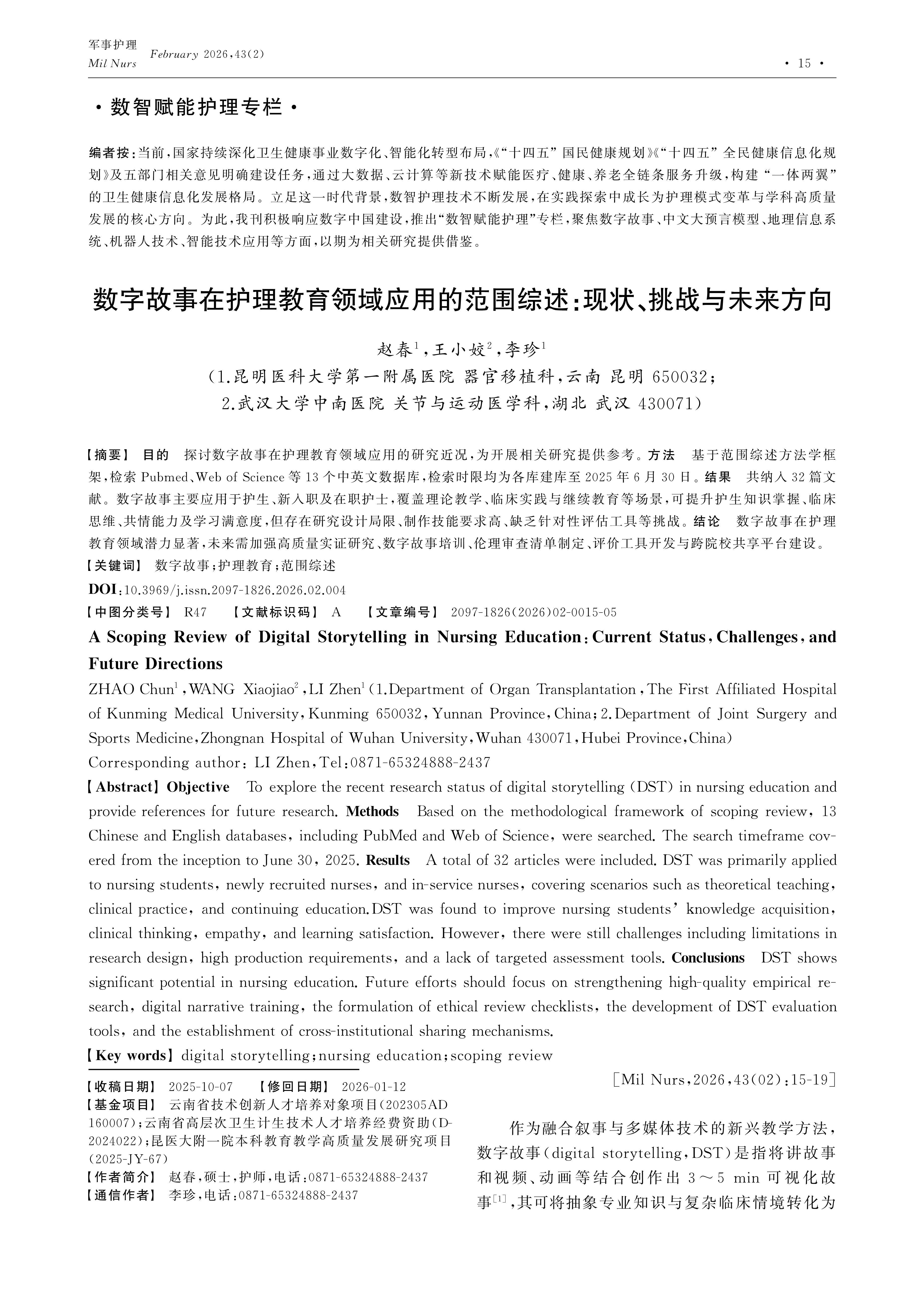 云南省技术创新人才培养对象项目(202305AD160007);云南省高层次卫生计生技术人才培养经费资助(D-2024022);昆医大附一院本科教育教学高质量发展研究项目(2025-JY-67)